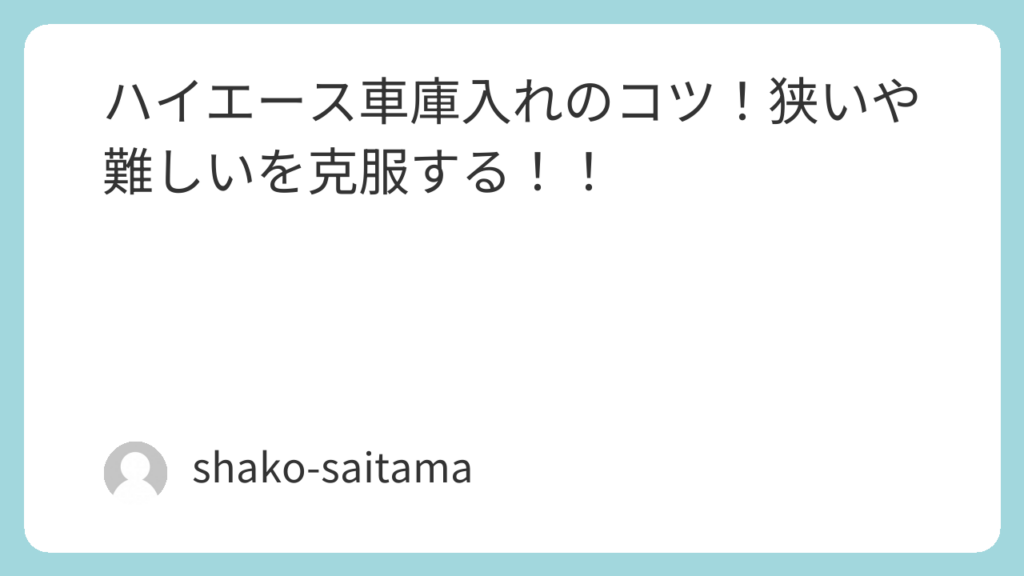 ハイエースの車庫入れのコツ!狭い難しい駐車場も克服する完全ガイド 埼玉の住宅街を走っていると、本当に道が細くて「ここでハイエースの車庫入れなんて無理だよ…」と冷や汗をかく場面ってありますよね。ハイエースはその圧倒的な積載量と見た目のカッコ... -